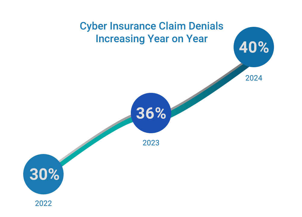 - 40-44% of cyber insurance claims are denied and nearly half never get paid out.