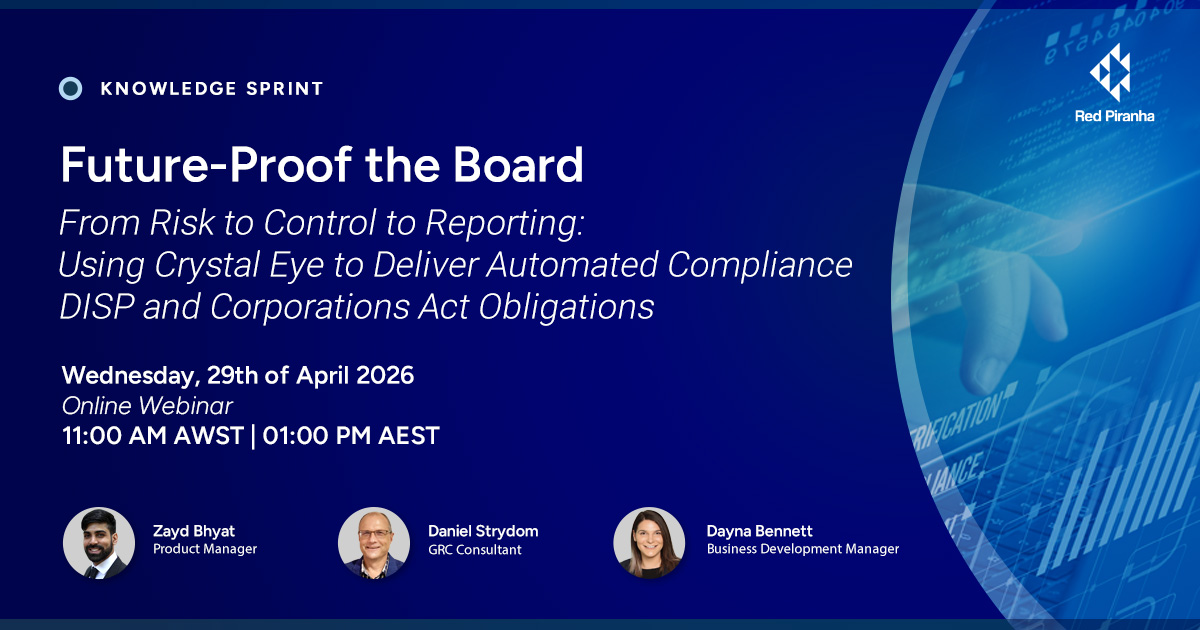 Risk > Controls > Reporting lifecycle using Crystal Eye OS and Orchestrate, delivering automated, Board‑ready compliance aligned to DISP and Corporations Act obligations.