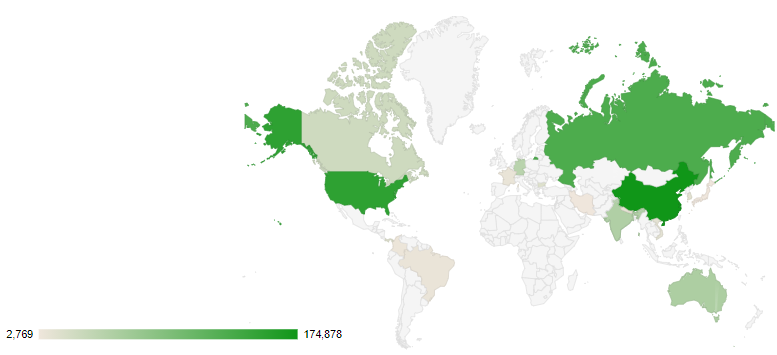 Top Attackers By Country| China | 109931 | 43.58% | | United States | 66460 | 26.35% | | South Korea | 47968 | 19.01% | | Vietnam | 6278 | 2.48% | | Russia | 5574 | 2.21% | | India | 3164 | 1.25% | | Hong Kong | 3056 | 1.21% | | Germany | 2580 | 1.02% | | Poland | 1555 | 0.61% | | Albania | 1552 | 0.61% | | Japan | 1422 | 0.56% | | Seychelles | 975 | 0.38% | | Taiwan | 612 | 0.25% | | Greece | 612 | 0.24% | | Argentina | 420 | 0.16% |