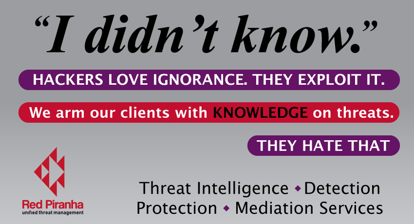 Keeping up with the exploits, the hacks, tricks and underhanded methods used to get inside your system is hard work. It takes constant effort and a lot of smart people doing a lot of smart things to keep ahead of these threats. Red Piranha has those people on staff and we partner with top industry security agencies and firms who have even more insight into threats.